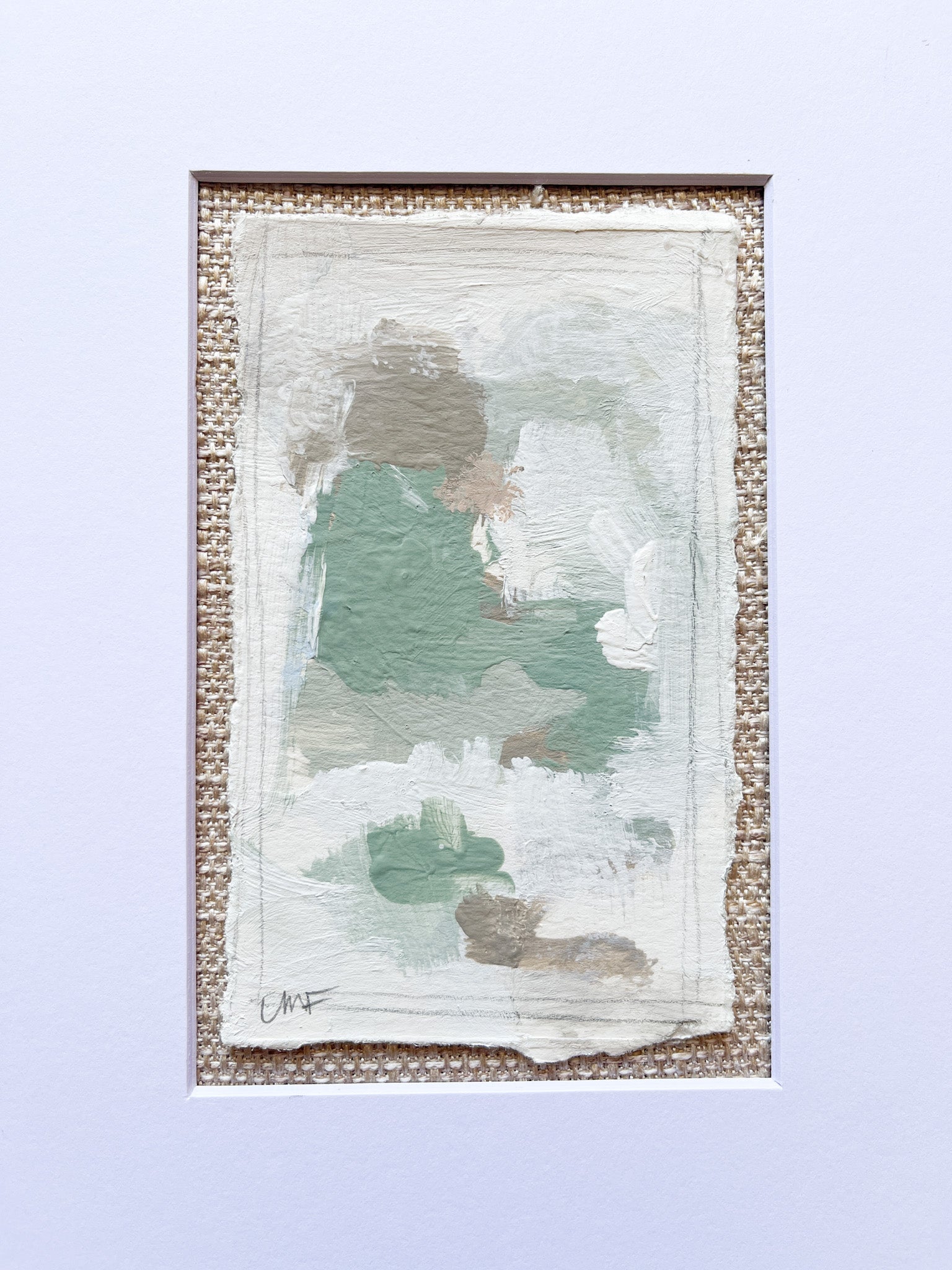 Medium: Mixed media (acrylic, oil and graphite) on 3x6 hand-torn cold press paper with deckled edges.