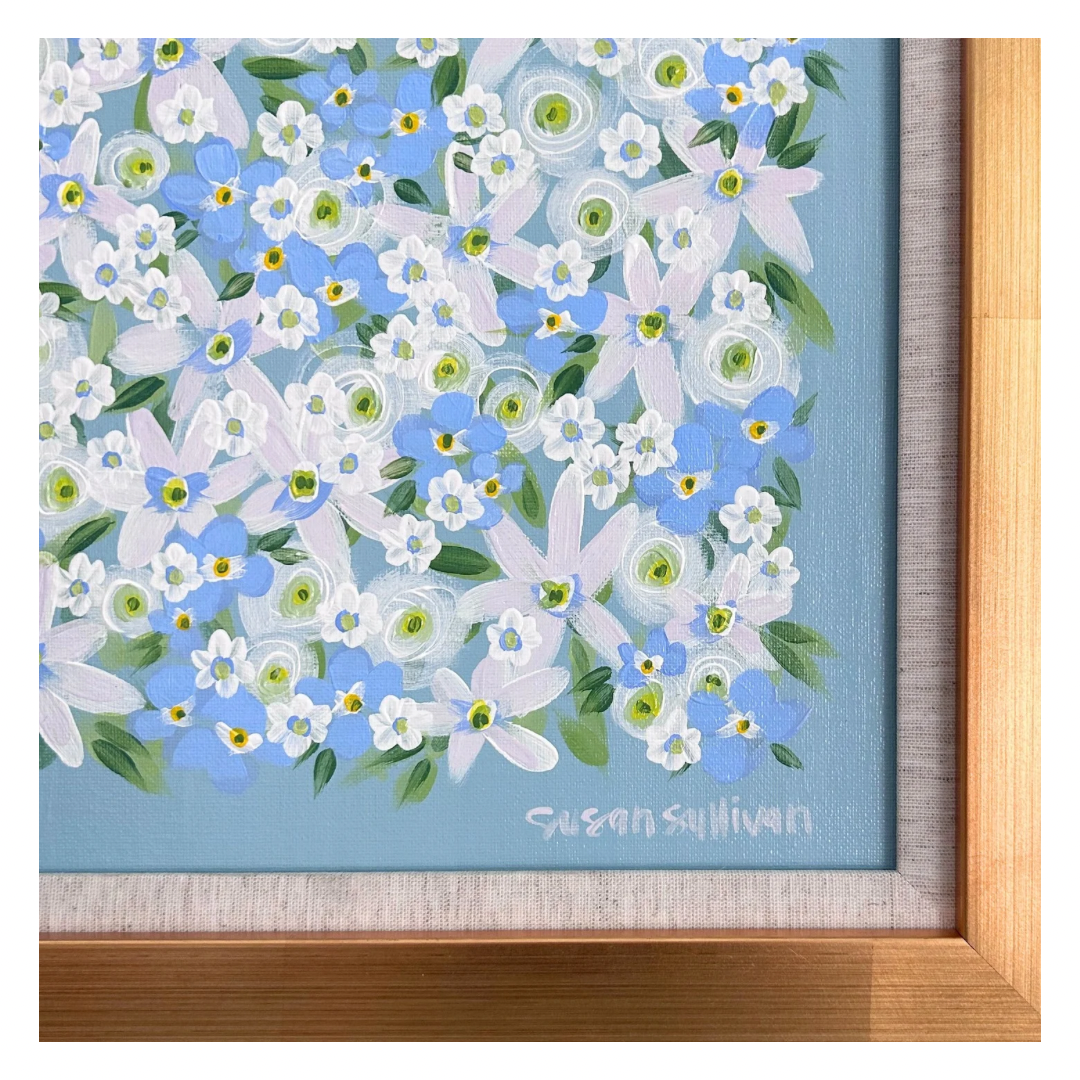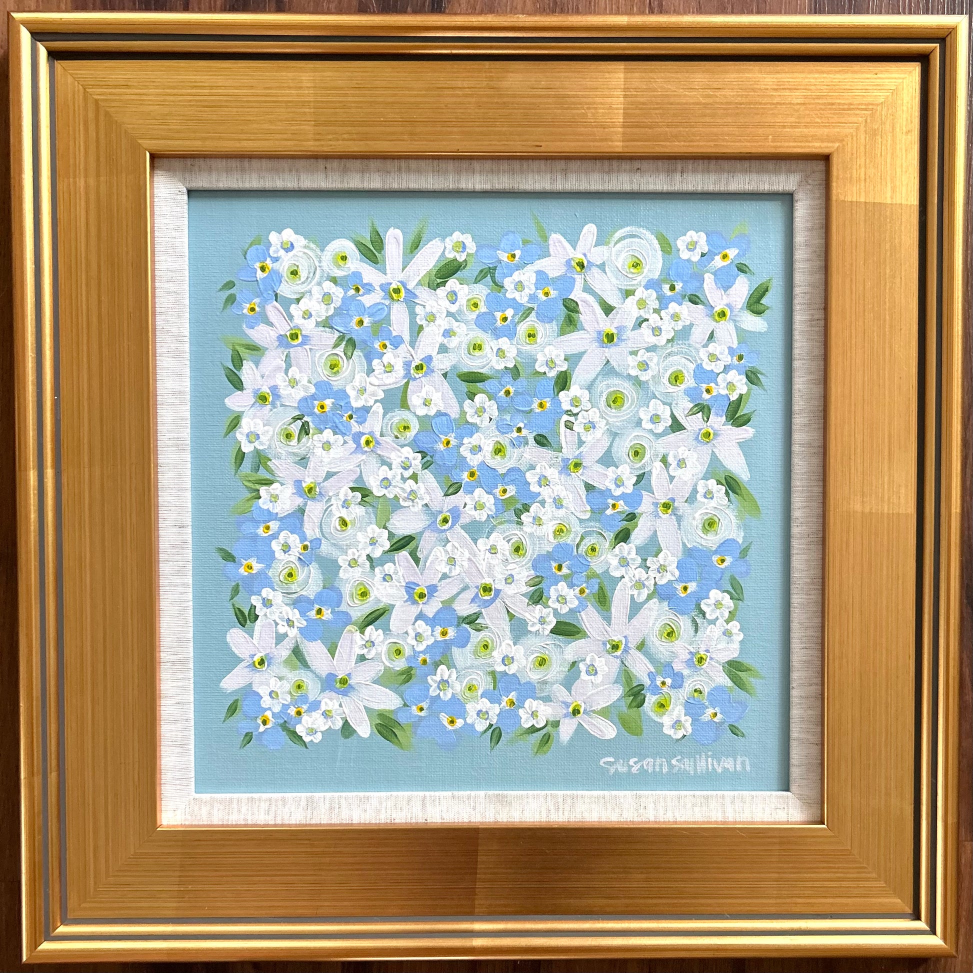 Gold wood Plein Aire frame with linen liner adds 3” to each side, framed dimensions are 18x18”