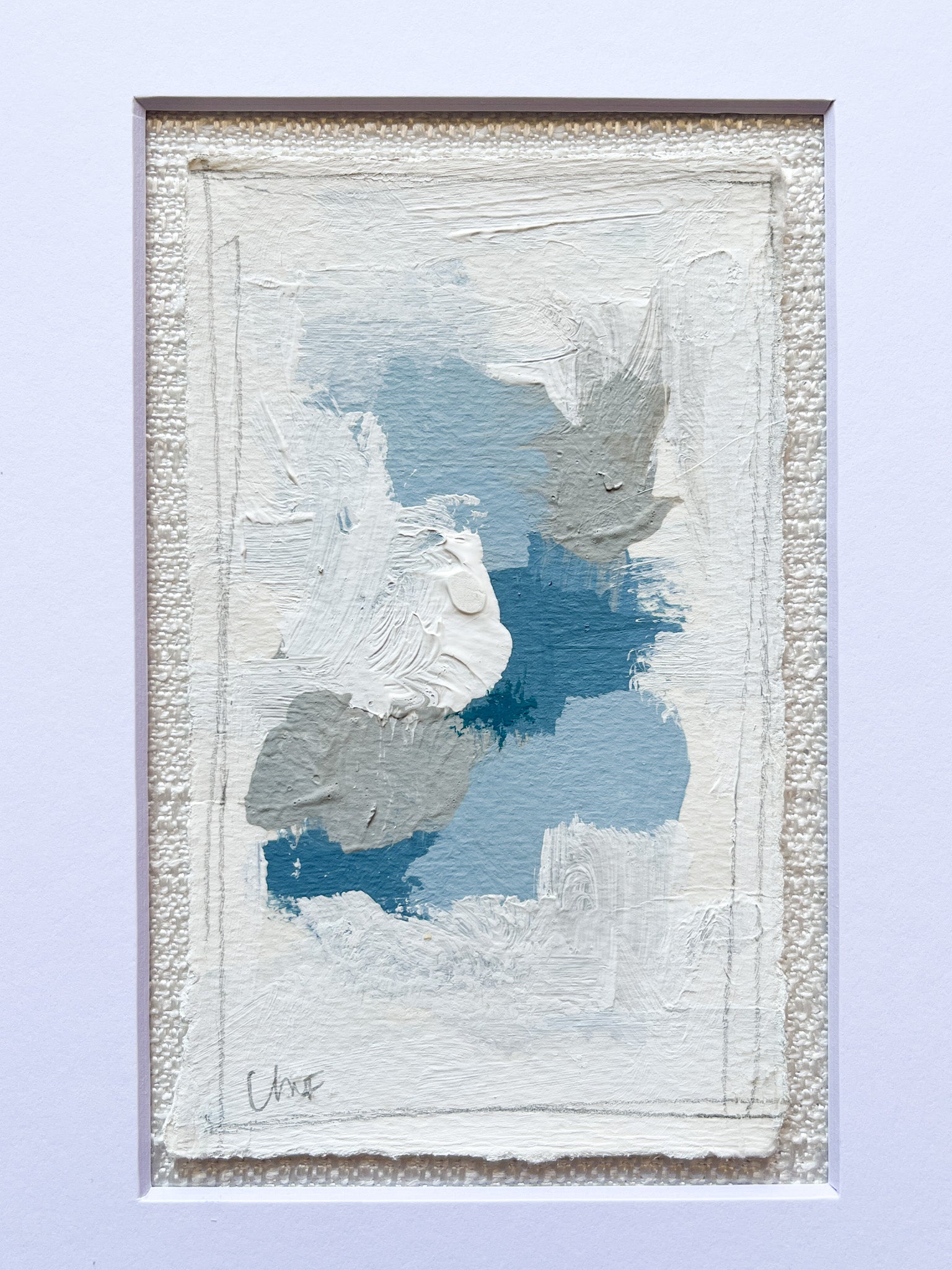 Medium: Mixed media (acrylic, oil and graphite) on 3x6 hand-torn cold press paper with deckled edges.