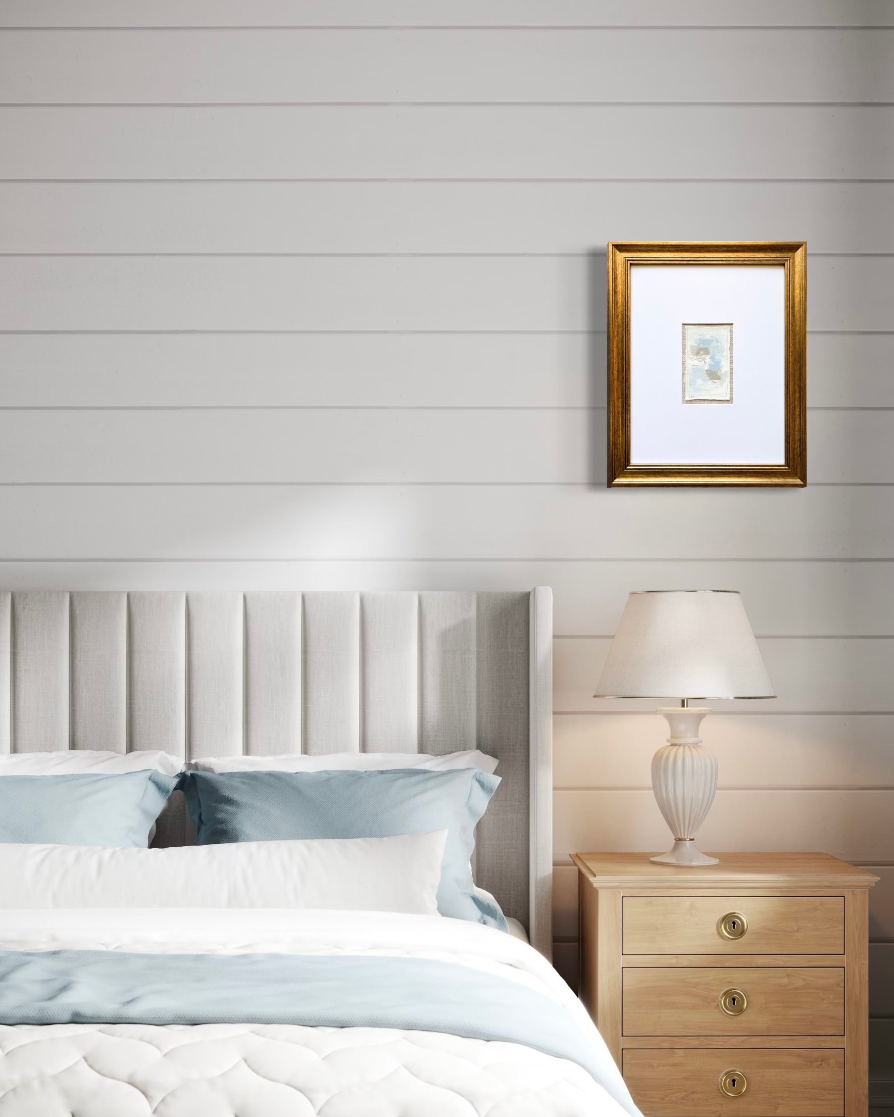 Details: Framed in vintage gold frame with glass front, matted on linen blend fabric in the color Sand, bright white 11x14 mat with 4x6 opening.